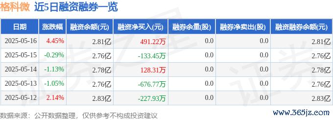 格科微融资融券信息显示,融资方面,当日融资买入2126.69万元,融资偿还1635.46万元,融资净买入491.22万元。融券方面,融券卖出0.0股,融券偿还0.0股,融券余量0.0股,融券余额0.0万元。融资融券余额2.81亿元。